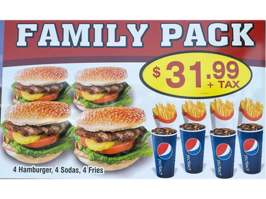 4 Hamburgers, 4 Sodas & 4 Fries $31.99